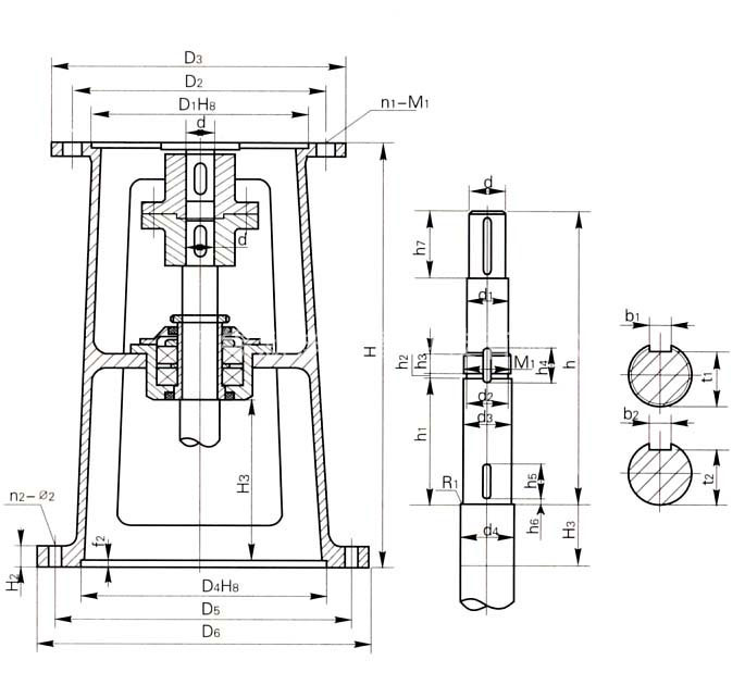 本機架系列的JXLD型適用與XLD型擺線針傫行星減速機聯(lián)接,JBLD型適用于與BLD型擺線減速機相連接。為使攪拌軸與軸承室裝配。維修方便,本公司對軸承室結(jié)構(gòu)進行改進設(shè)計。同時對BLD2、BLD3、BLD4與相配的機架JBLD2、JBLD3、JBLD4的軸承室加大。使之與較粗的攪拌軸相一致。