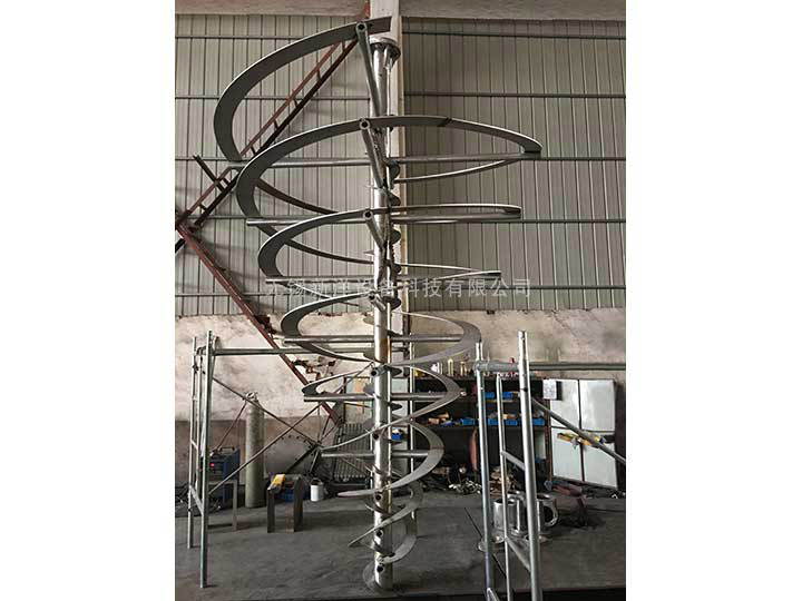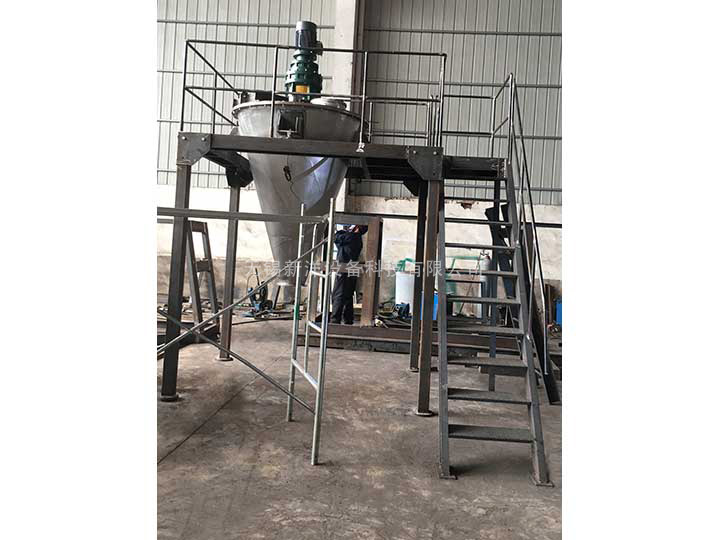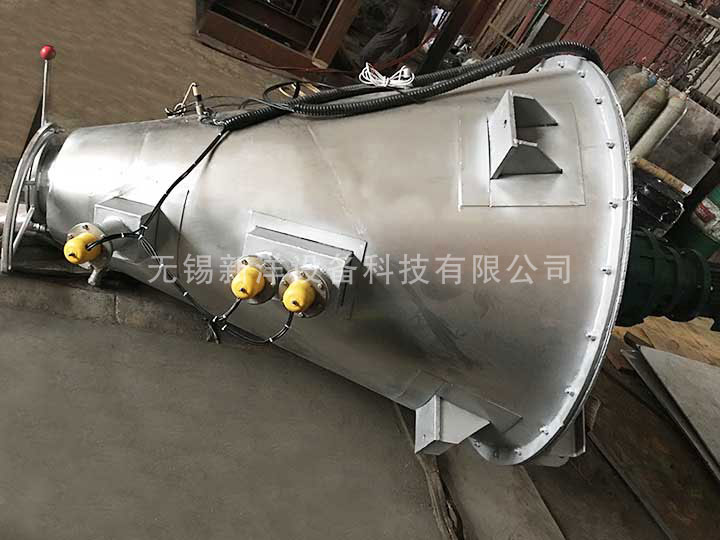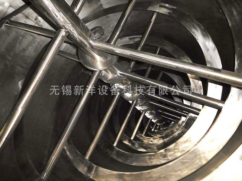 設備設有多種樣式(刮板、內(nèi)螺旋、外螺帶),也可以雙錐體結構,適應不同物料,適應較高粘度的流體物料混合。螺帶式混合機,它是攪拌粘性流體或稠狀、濕狀、膏狀為主,也可以混合粉體。